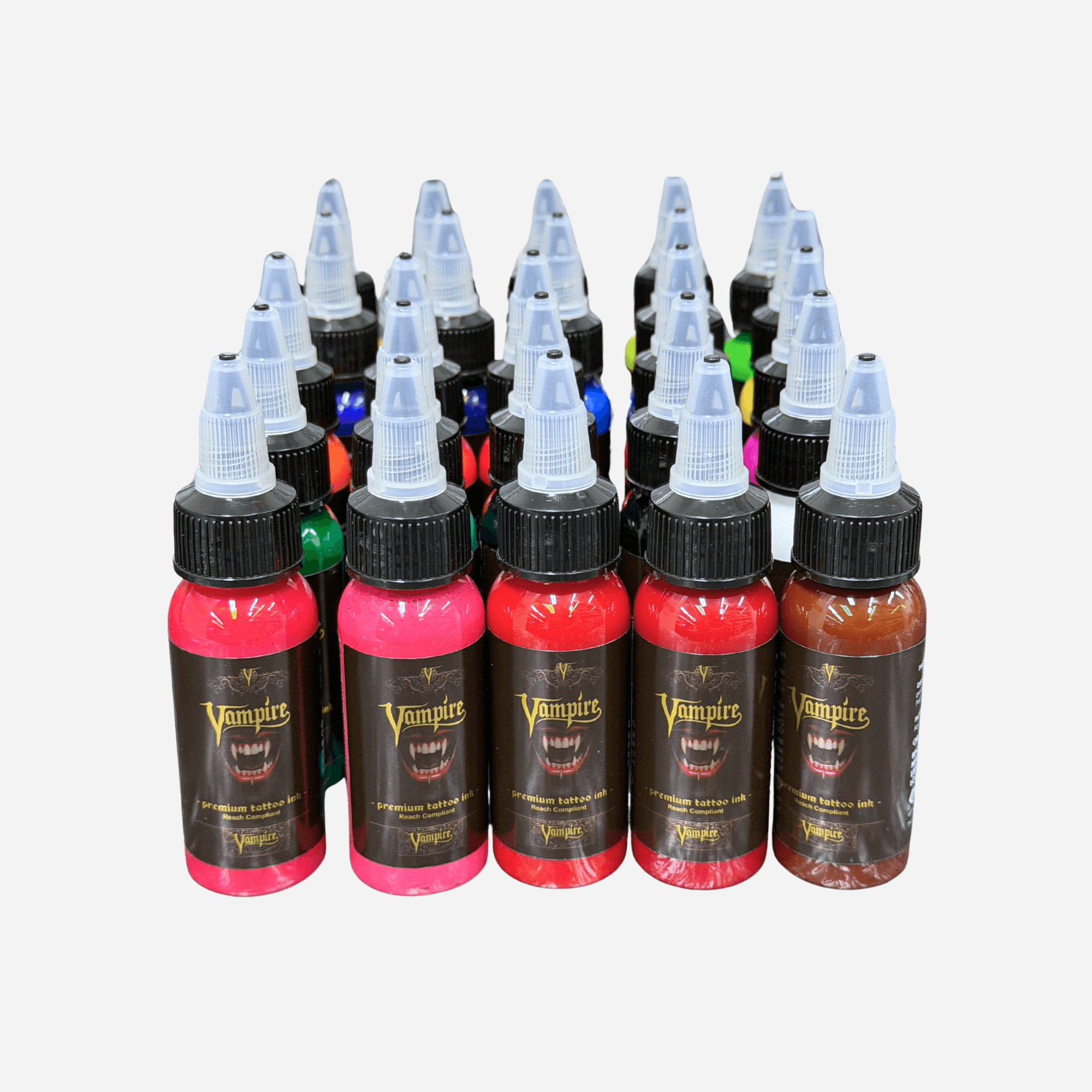 Why choose one when you can wield them all? The Vampire Multi Pack brings together 25 essential inks β from bold blacks and smooth greys to vibrant tones and flawless blends. Whether youβre lining, packing colour, or building smooth gradients, this set has your back from first drop to final wipe.